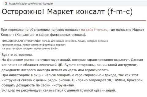 - Лживый брокер Маркет Консалт не стесняется ловить клиентов в соцсетях