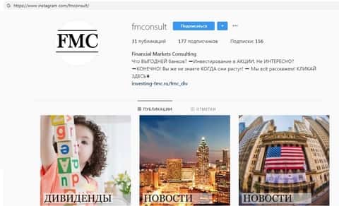В своем желании обогатиться за счет простого народа, шарашка F-M-C не поленилась представить свои услуги в популярных социальных сетях. Смотрим профиль в Instagram: ничего информативного, снова призывы инвестировать, еще и некликабельная ссылка. Ясно одно - аферисты.