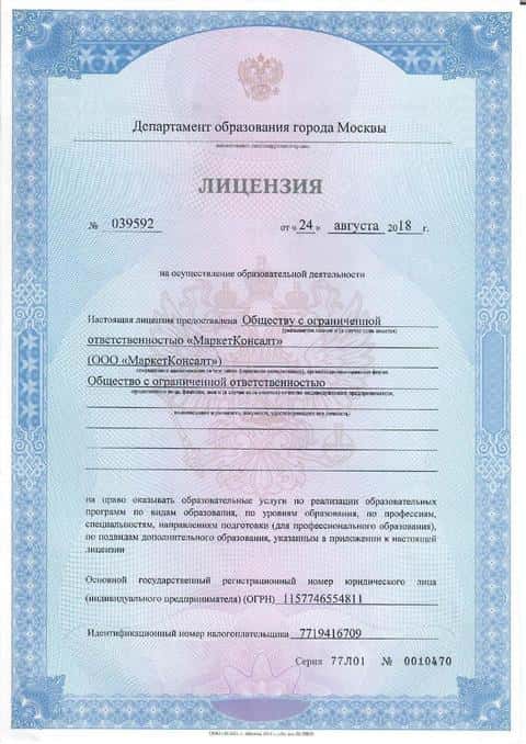 Жулье Маркет Консалт предоставило лицензию на своем сайте, видимо, чтобы сомневающиеся лохи больше не сомневались и покорно сливали свои деньжата. Ведь не всякий станет читать, какую именно лицензию ему подсунули. А это лишь разрешение на образовательную деятельность.