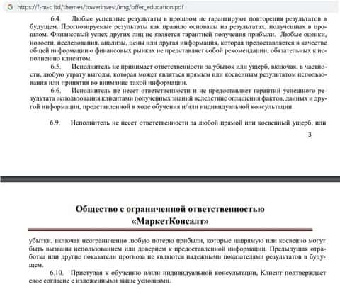 Договора составлены мошенниками из F-M-C так, что комар носа не подточит. Согласно им, соглашение заключается с клиентом лишь для получения им безвозмездных услуг по обучению и консультациям. То есть потеряв по вине аферистов все свои сбережения, жертва ничего не докажет в суде.