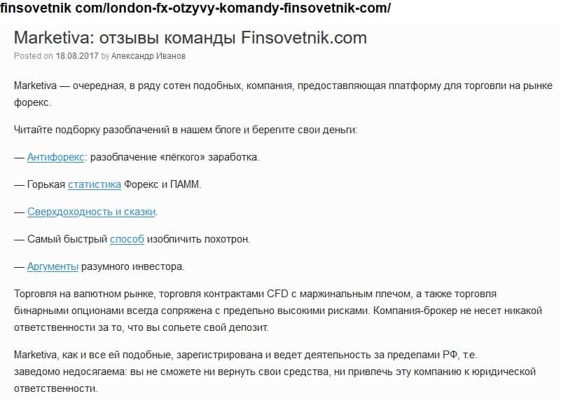 Что думает автор статьи о мошенниках Маркетива?