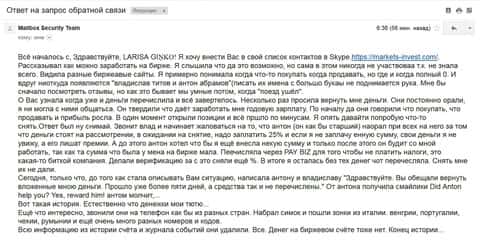 - Подробная жалоба на аферистов МаркетсИнвест - клиент утратил более 1700$