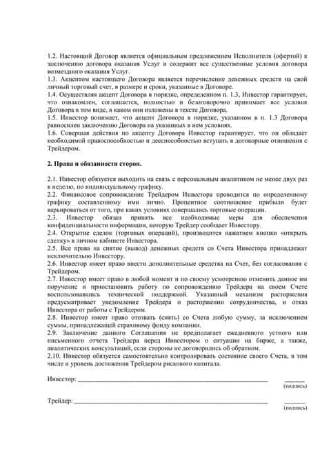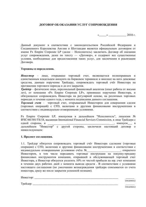 Еще представлен "договор" на сопровождение клиента, а точнее лоха, который пришел, не понимает как работает биржа, поэтому надежнее брокеру самому слить Ваши деньги.