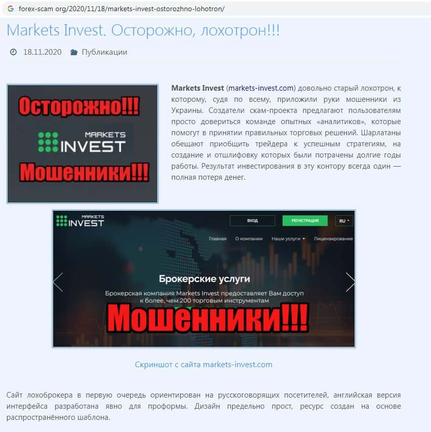 Разоблачение мошеннической организации Markets Invest на сайте forex-scam org