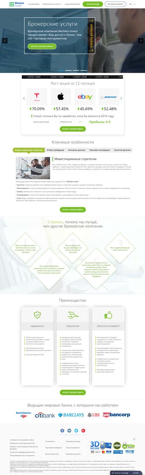 На своем официальном сайте контора Маркетс Инвест ничем новым не порадовала, так как у аферистов одна цель - привлечь как можно больше лохов, которые отдадут им свои сбережения. К данной цели и соответствующие инструменты. Не ведитесь на их мошеннический сайт, а тем более не передавайте деньги подобным лохотронам.