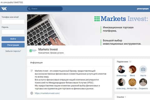 Мошенники Маркетс Инвест не отстают от технического прогресса и используют социальные сети в качестве одного из основных инструментов привлечения новых лохов. Далее мы представим скриншоты тех страничек, которые используются аферистами чаще всего: