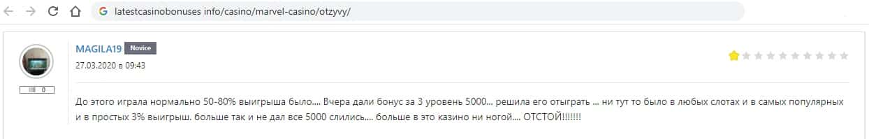- Отзывы в интернете о жуликах Марвел Казино