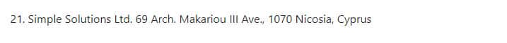 Официальное юридическое лицо, которое ведет работу с клиентами от имени жуликов и аферистов Марвел Казино - это Simple Solutions Ltd.