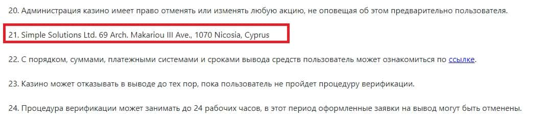 Чтобы не подвергать себя риску, мошенники Марвел Казино решили зарегистрироваться в оффшорной зоне, на Кипре в Никосии.