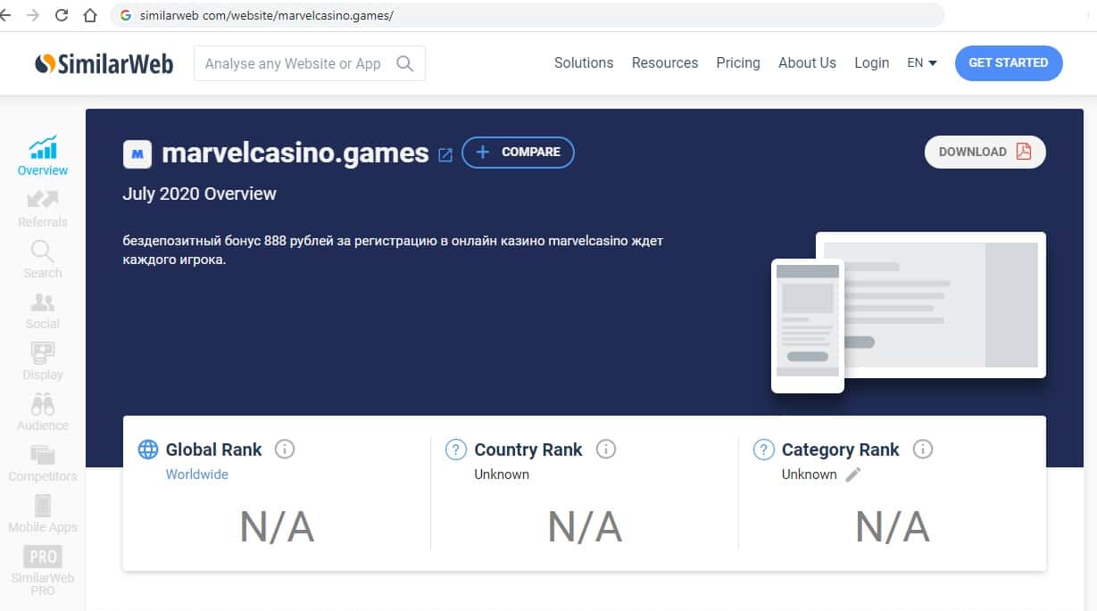Источники трафика сайта Марвел Казино неизвестны