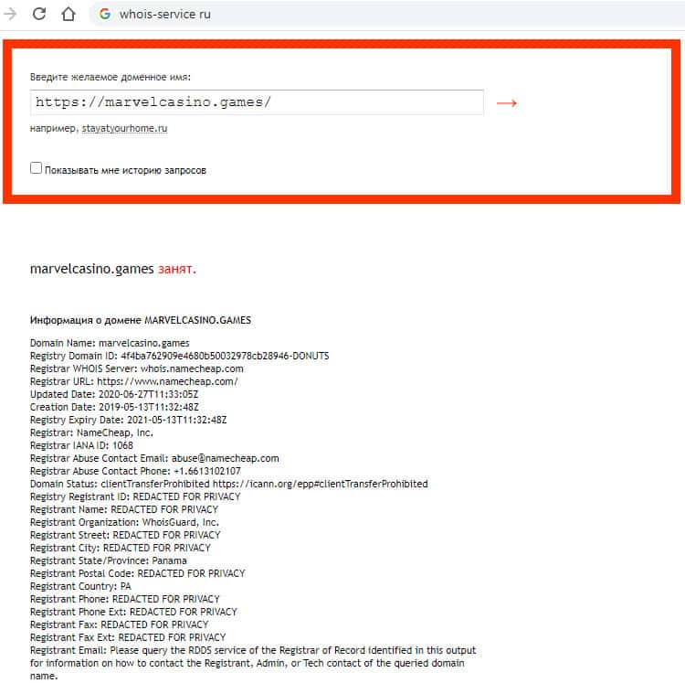Информация о том, кто именно владеет доменом marvelcasino games скрыта от посторонних глаз. Из этого легко понять, что мы имеем дело с обычным лохотроном.