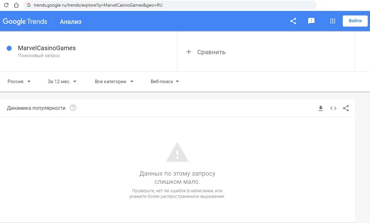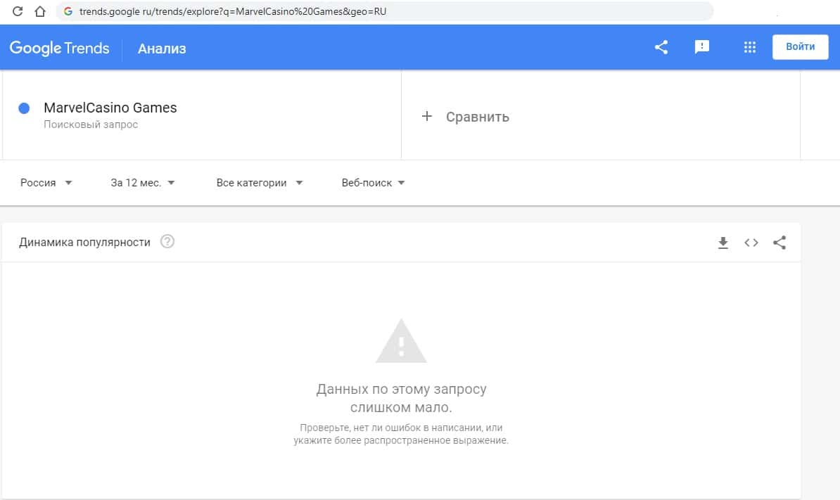 - Какое количество запросов MarvelCasino Games показывает Google?