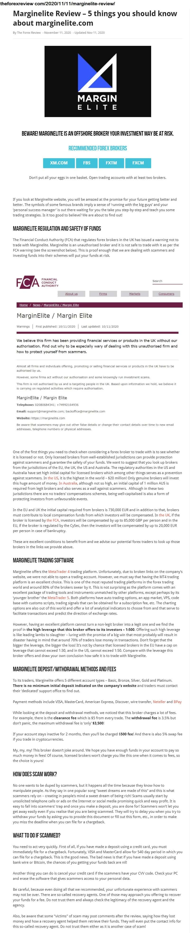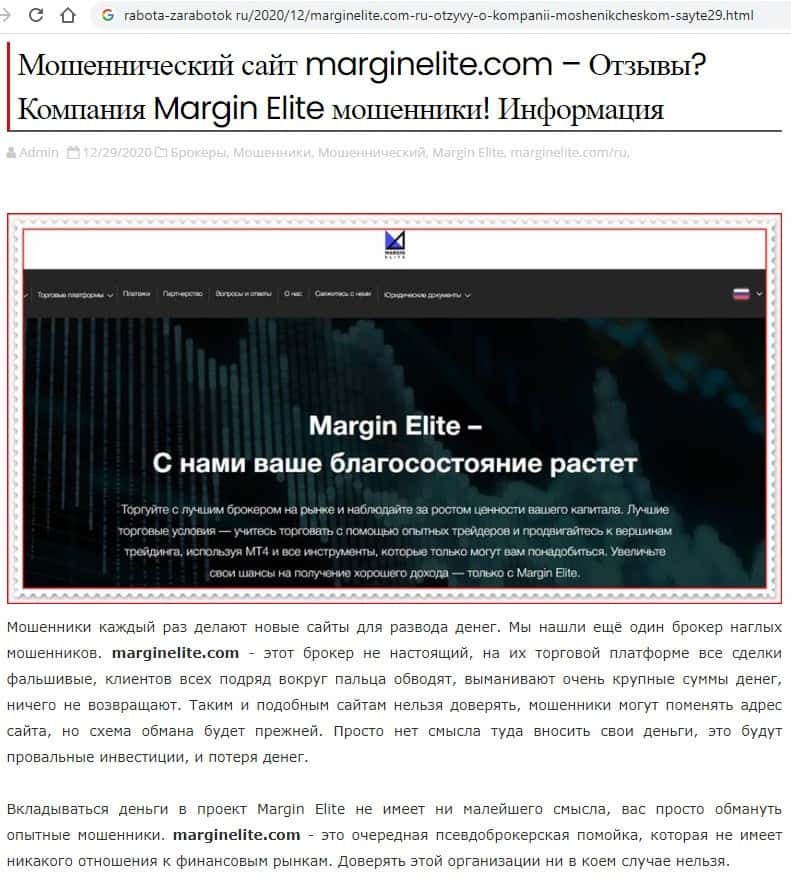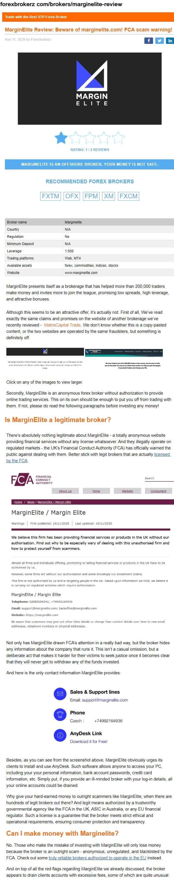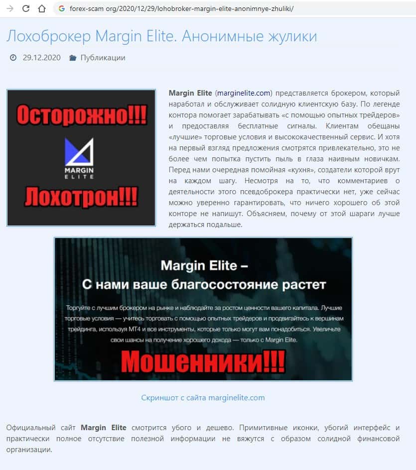 Еще один авторитетный ресурс говорит о том, что Маржин Элит - это просто лжеброкер, с которым нельзя ни в коем случае связываться. Они вас все равно обманут.