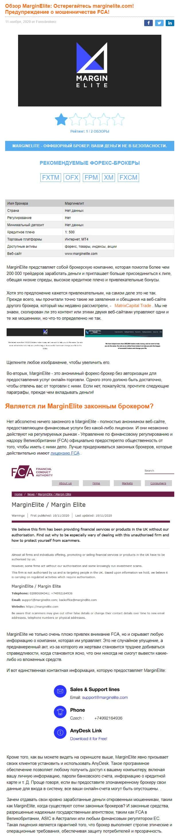 Обзоры на то, что такое на самом деле Маржин Элит делают не только русскоязычные, но и западные издания. И там тоже однозначны в оценках работы этого "брокера".