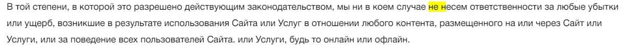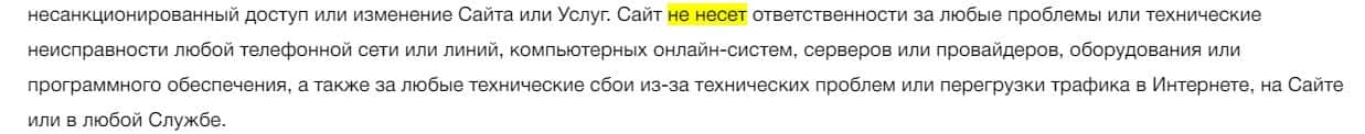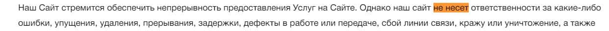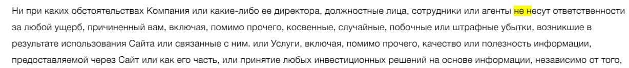 И еще один последний раз мошенники не забывают упомянуть о том, что они и их руководство не несут никакой ответственности, если вы понесете убытки.