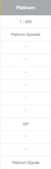 И последний тип счета, который предлагают открыть у себя мошенники Маржин Элит - это Platinum с таким же кредитным плечом 1:500.