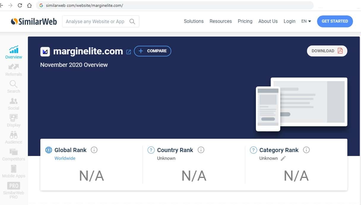 Источники трафика по сайту мошенников marginelite com неизвестны. Только по одному этому факту сразу можно понять, с кем мы на самом деле имеем дело.