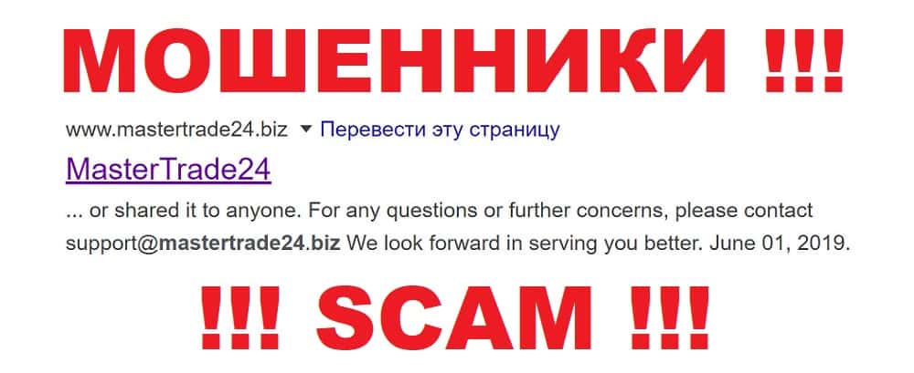 В случае, если шулера из Мастер Трейд 24 и Вас обворовали, то обязательно расскажите об этом случае нам. Сообщите Ваш адрес электронного ящика в форме связи далее, с Вами выйдут на контакт.