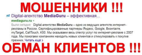 Если шулера обворовали Вас, то тогда не допустите, чтобы лохотронщики Медиа Гуру не прекращали кидать таких же клиентов как и Вы в будущем, не прекращайте делиться собственным печальным опытом.
