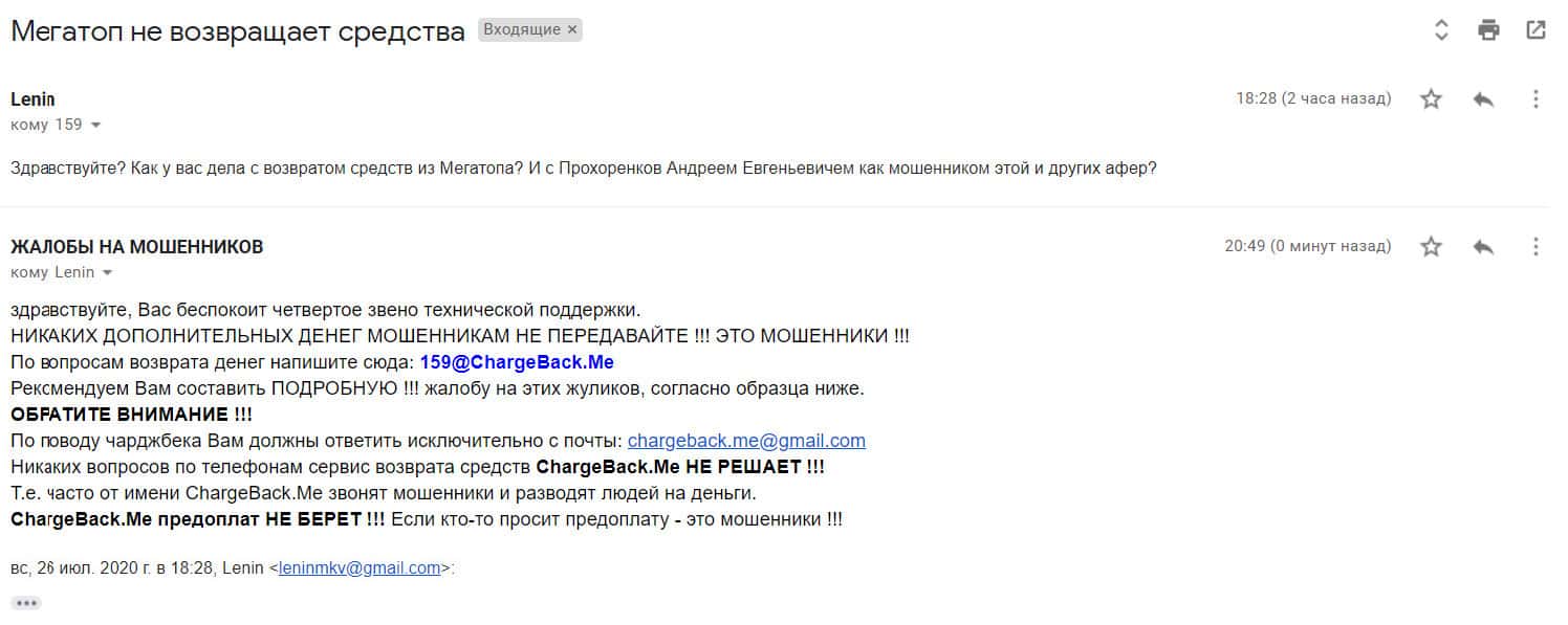 Жалоба в том числе и на мошенническую контору MegaTop Fund