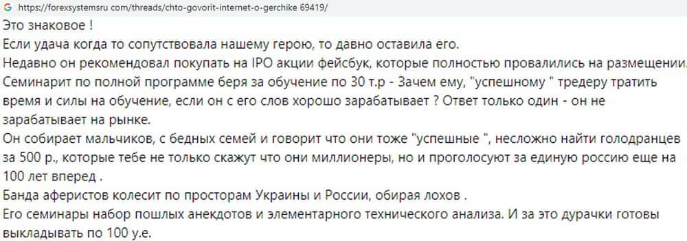Создатель MegaTop Fund пытался привлечь инвесторов для доверительного управления, но его советы с завидным постоянством оказываются провальными. Так что горе-мошенник занялся семинарами и тренингами, на которых за 30000 рублей втюхивает новичкам свой псевдо-опыт, а потом пытается развести их на то же доверительное управление.