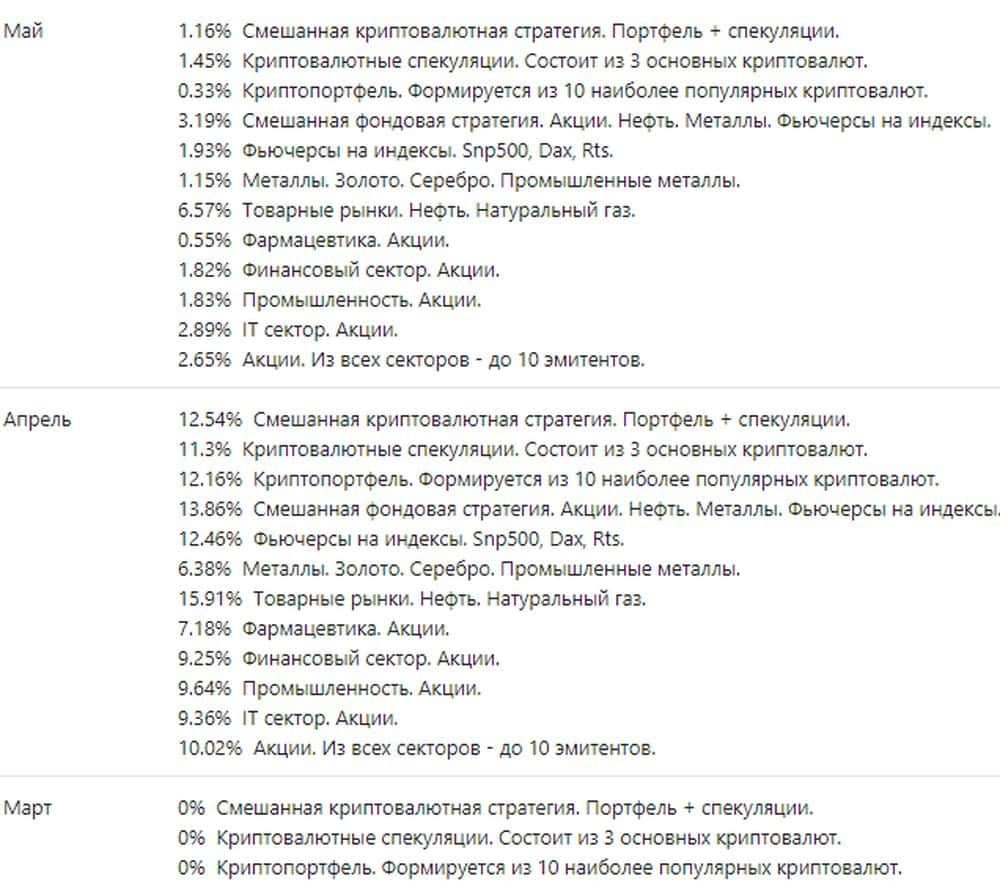 На самом деле посадочную страницу MegaTop Fund сайтом может назвать только очень непритязательный пользователь. Эта дешевка склепана настолько криво, будто ее конструировал школьник младших классов в туалете на переменах. На всю страницу - какие-то названия портфелей или стратегий и цифры напротив них.
