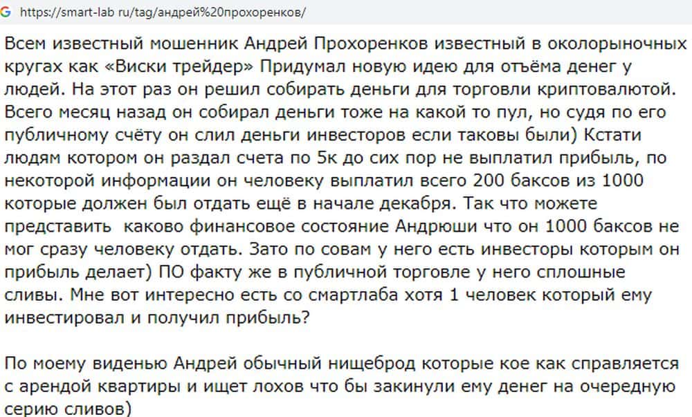 Склепан лохотрон MegaTop Fund из рук вон плохо. Видимо у его создателя Андрея Прохоренкова по кличке Виски мозгов на большее не хватило. Большинство тематических ресурсов, например, smart-lab ru, уже давно раскусили в нем дешевого разводилу. Он занимается только сливами и обворовывает доверчивых инвесторов-новичков.