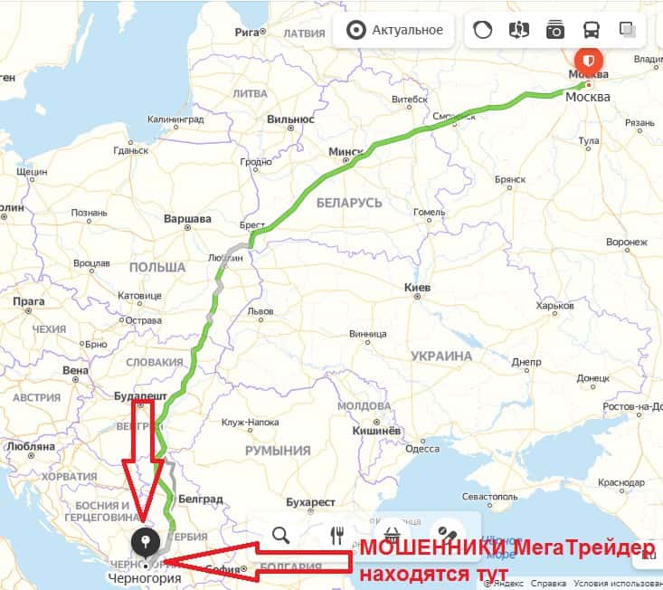 Официальное место регистрации шаражкиной конторы МегаТрейдер находится в Черногории. Подлинно не установлено, так ли это на самом деле.