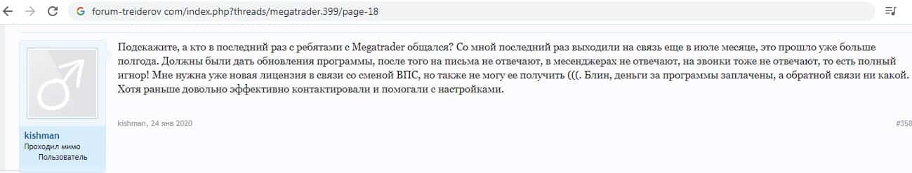 Жулики МегаТрейдер получили деньги за программу, но техподдержу клиентам не оказывают. Пользователь запрашивает обновления, а мошенники просто пол года молчат!