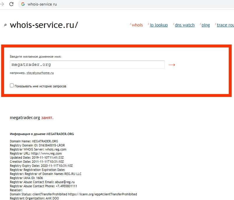 После тщательной проверки домена шаражки MegaTrader Org оказалось, что ничего не известно о настоящих владельцах. Подобная информация находится на семью печатями!