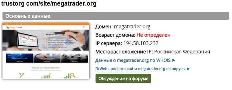 - Информация в сети о лохотронской конторе MegaTrader Org