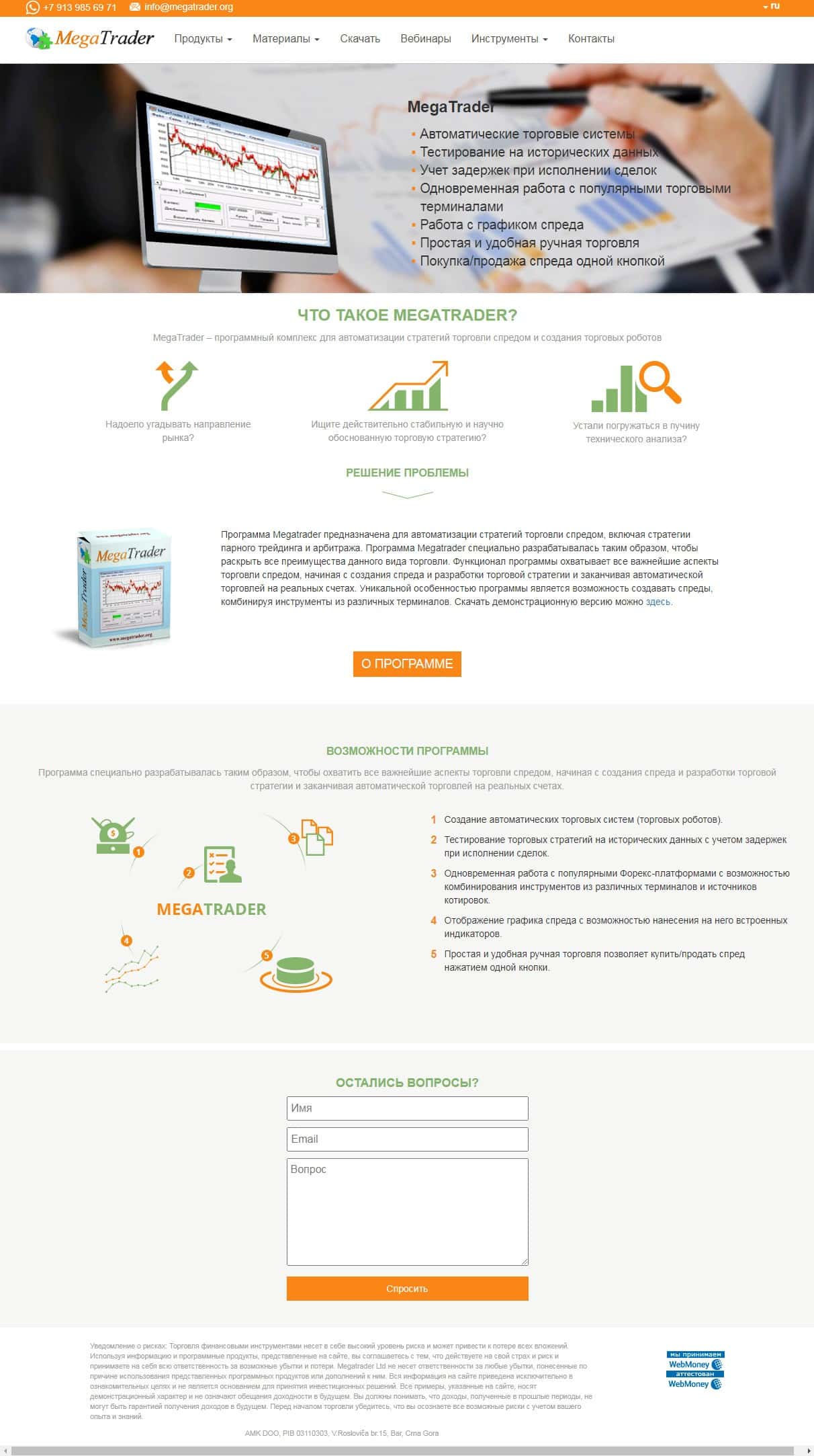 Ничем особенным лоховозка МегаТрейдер не отличилась. Дешевый сайт, созданный на быструю руку. Он малоинформативный и для пользователей не удобный в пользовании.