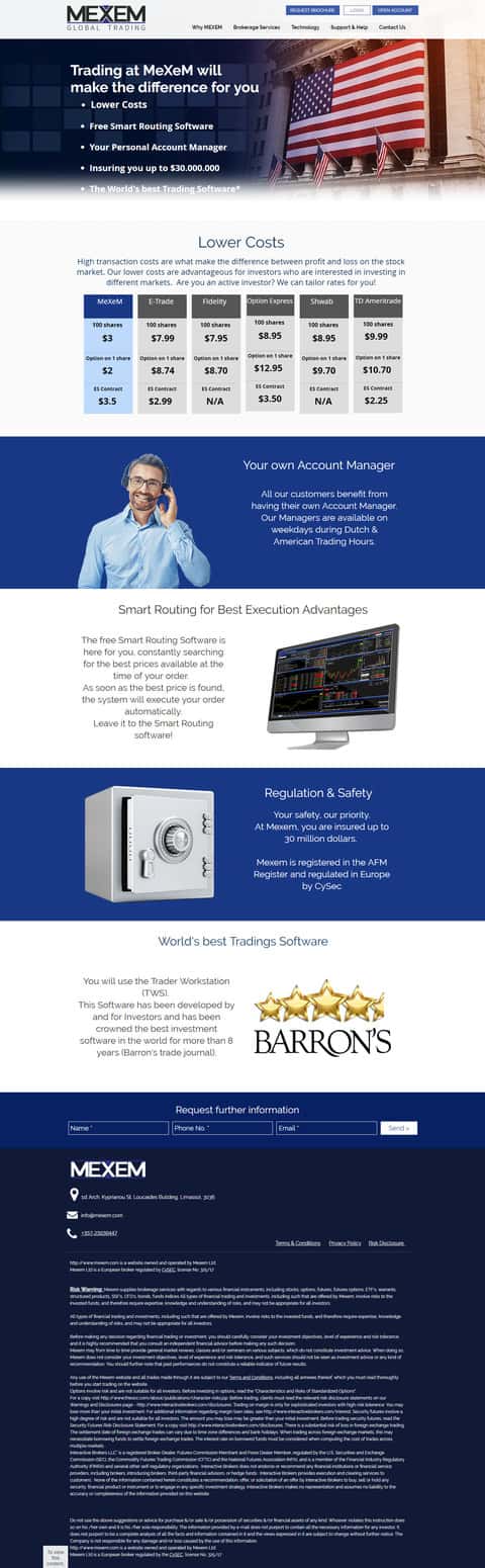 Mexem - очередная форекс-шарага, разводящая людей на деньги, якобы предоставляя финансовые услуги и доступ к торговым рынкам Форекс. Мошенники используют оффшорную зону Кипра, дабы как можно безопасно проводить свою мошенническую деятельность и при этом не нести никакой ответственности.