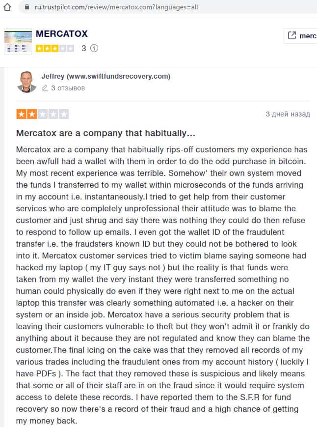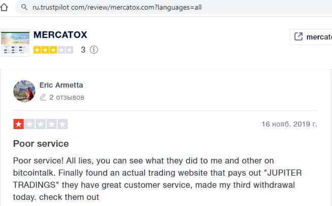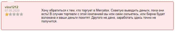 - Еще один трейдер советует как можно быстрее выводить деньги из лохотрона Mercatox