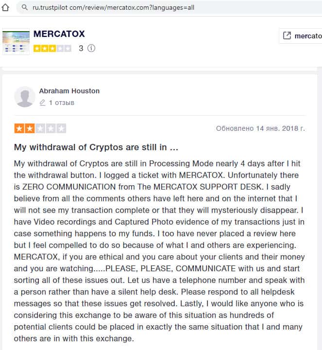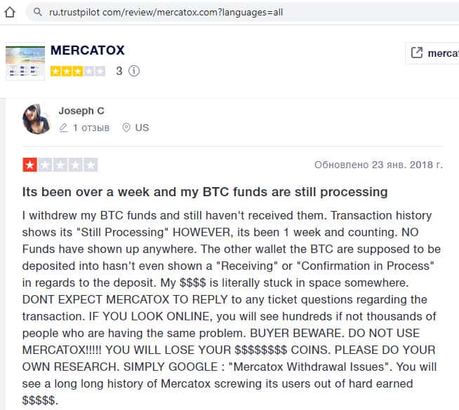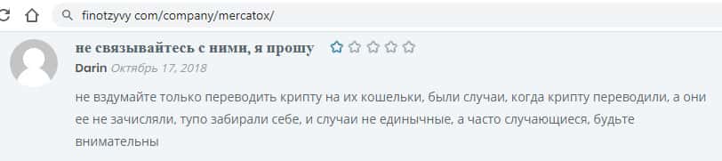 Еще один трейдер советует как можно быстрее выводить деньги из лохотрона Mercatox