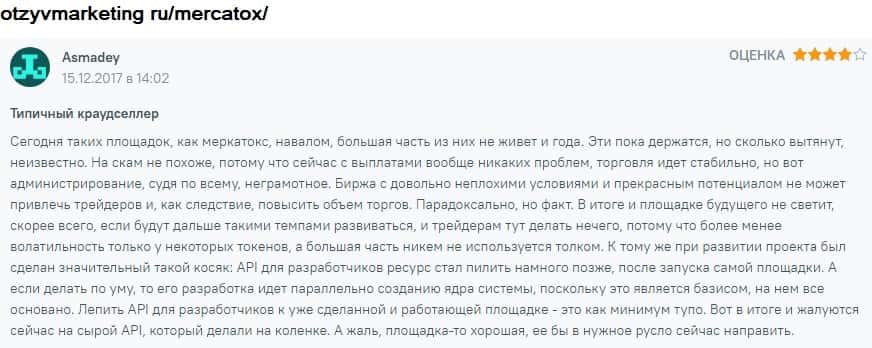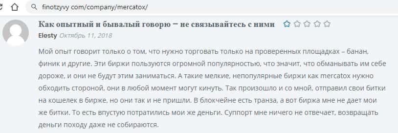 Опытный трейдер говорит о том, что торговать нужно только на проверенных площадках, а не Mercatox