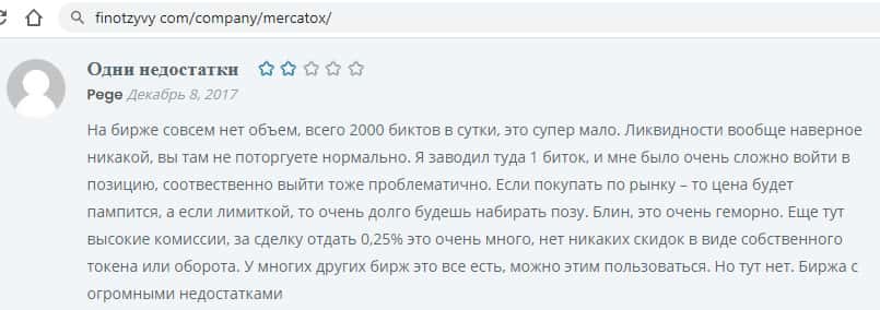 Ну и это само собой. Потому что маленькие биржи, а тем более мошеннические, как Mercatox не могут давать своим клиентам достойные объемы для торговли. Они едва управляются с этими. Но это сразу выдает их как жуликов и ничего более. Поэтому, лучше всего держаться от них вообще подальше.