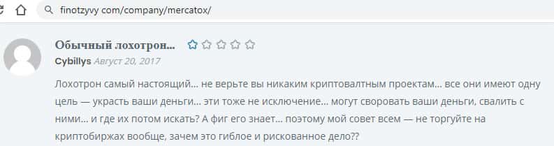 Мнение автора статьи о мошенническом проекте Mercatox