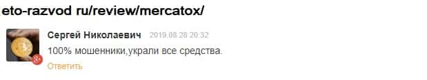 - Мнение автора статьи о мошенническом проекте Mercatox