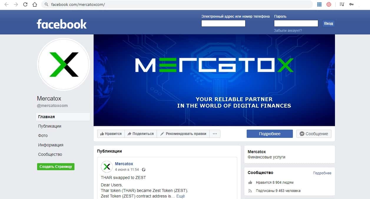 Аферюги Mercatox активно используют социальные сети для привлечения новых жертв в свой лохотрон