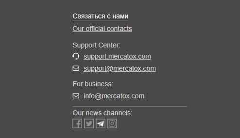 - по адресу электронной почты support.mercatox com, info@mercatox com