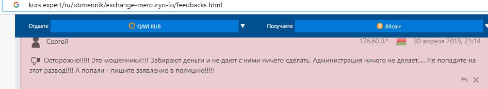 - Проходимцы из обменника Меркурио опрокинули очередного наивного пользователя сети интернет