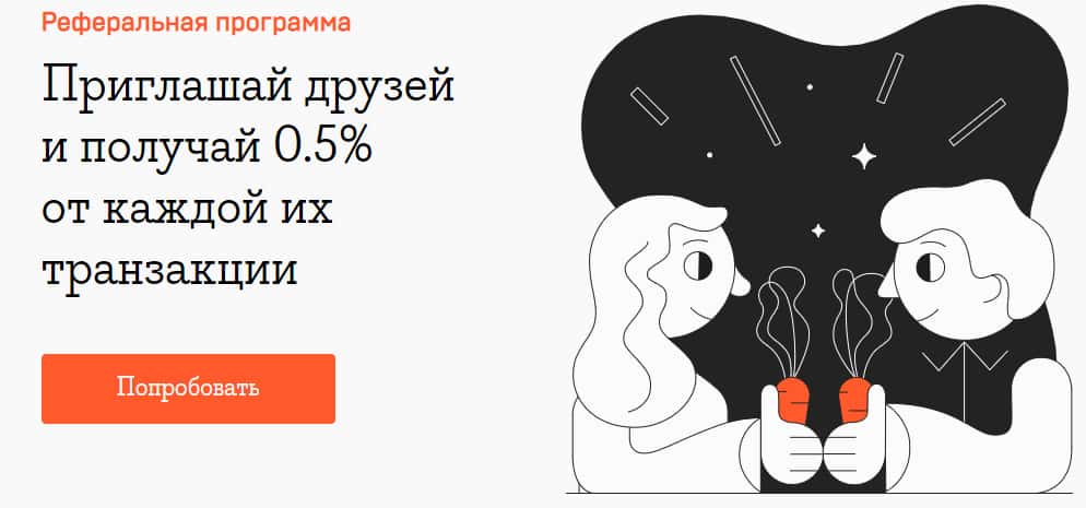 На следующей странице интернет-сайта Меркурио идет речь о якобы выгодной реферальной программе, благодаря которой трейдеры, приглашая друзей, могут зарабатывать 0,5 % от каждой транзакции друга. Хороший ход со стороны махинаторского брокера Mercuryo, перекладывая заманивание в свои сети новых клиентов на уже существующих.