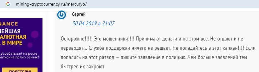 - Реальный негативный отзыв от человека, которого кинула жульническая контора Mercuryo