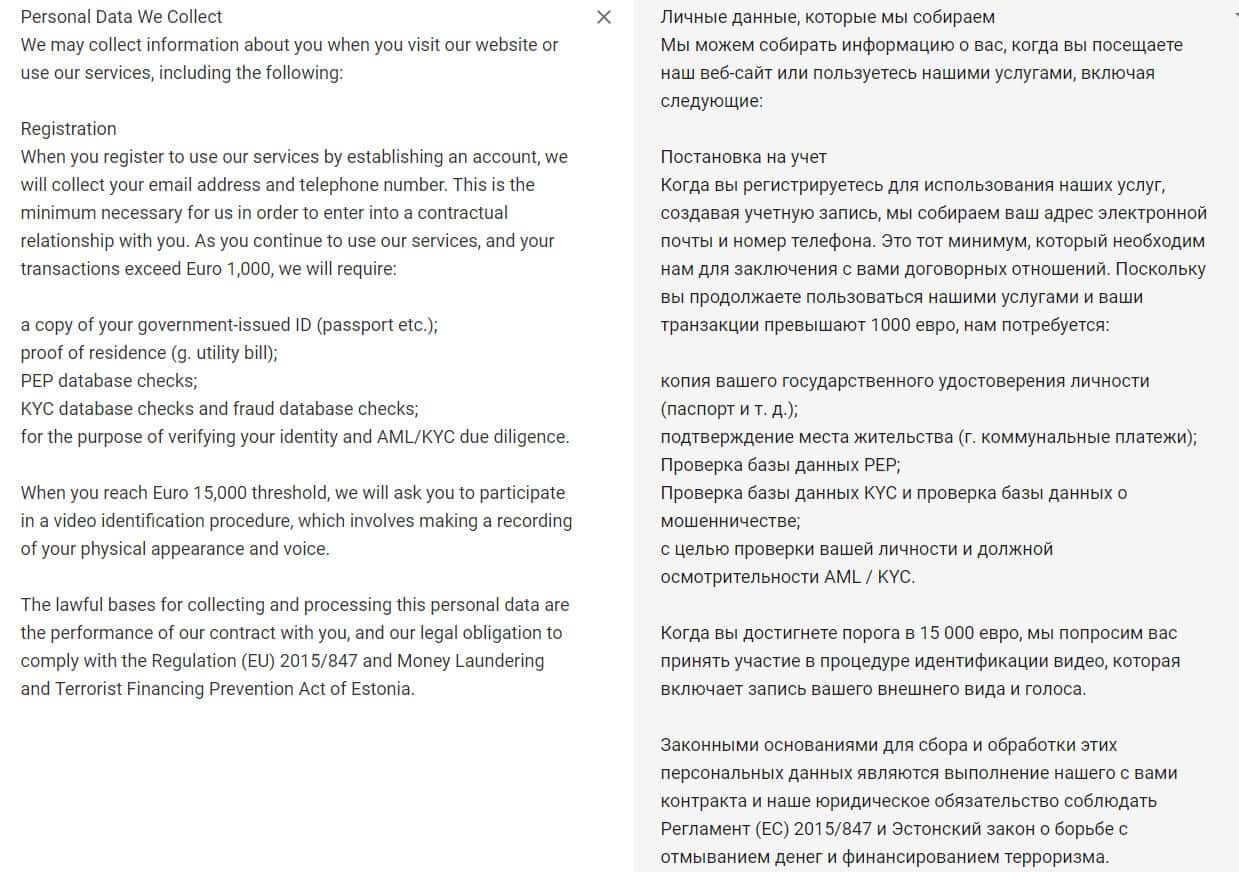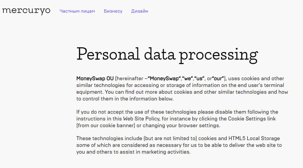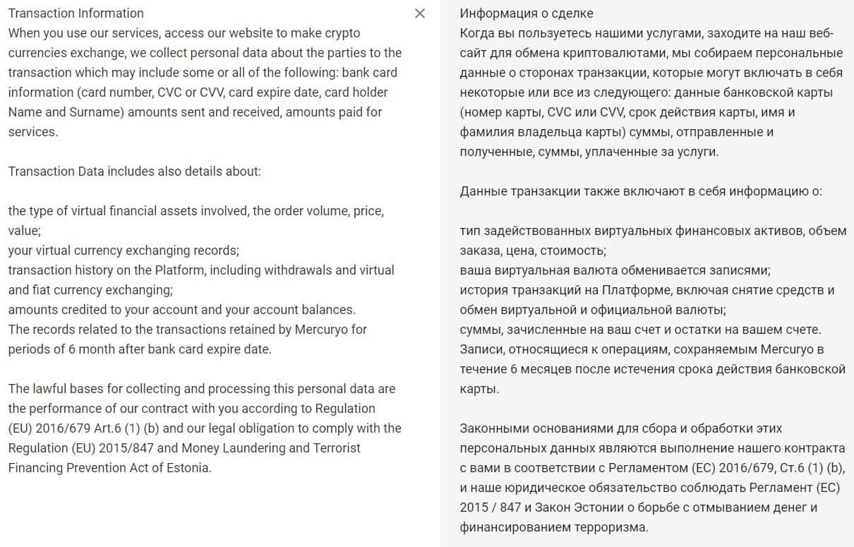 В разделе "Сбор личных данных клиентов" у ворюг из Меркурио следует информация о том, что с для регистрации и оказания услуг брокером, нужно предоставить исчерпывающий список личных данных. А вот с какой целью и какие имеются гарантии со стороны мошенников из организации Mercuryo о защите клиентов - увы, стоит лишь догадываться.