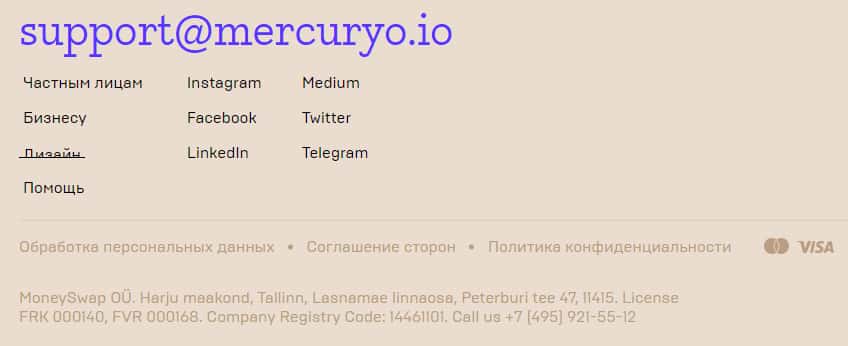- электронная почта support@mercuryo io