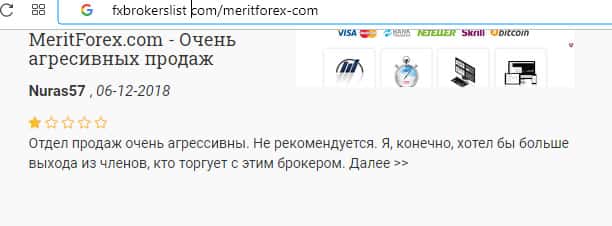 Человек жалуется на агрессивный отдел продаж кухни Мерит Форекс