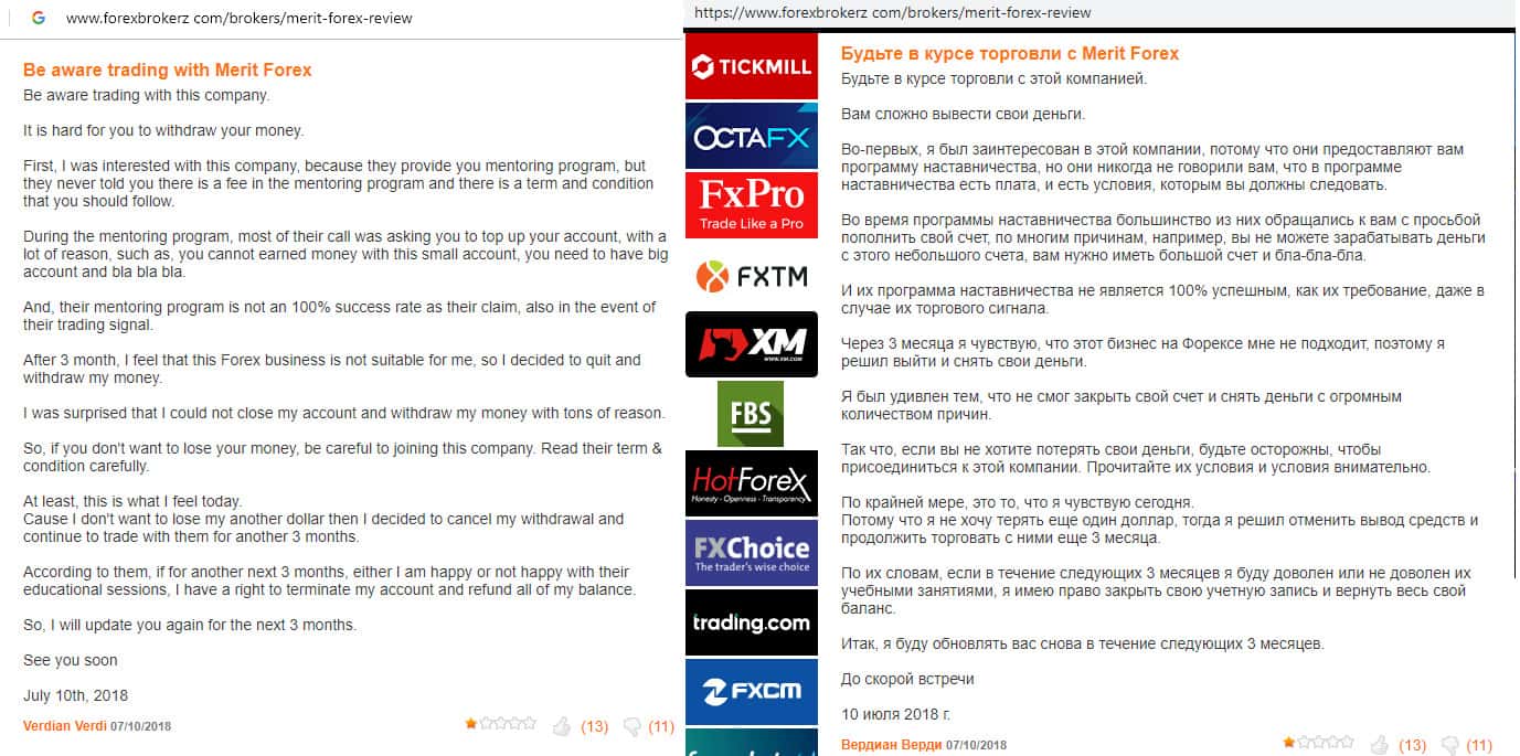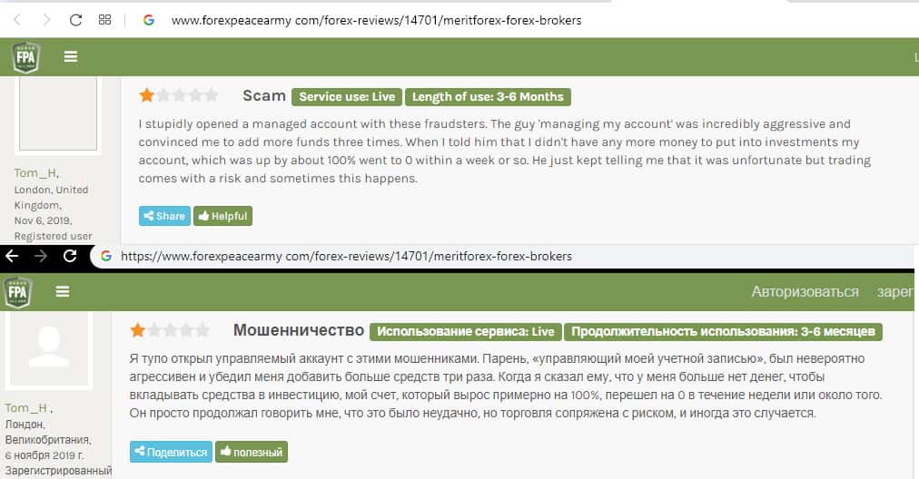 - Мошенники MeritForex имеют низкий рейтинг среди брокеров