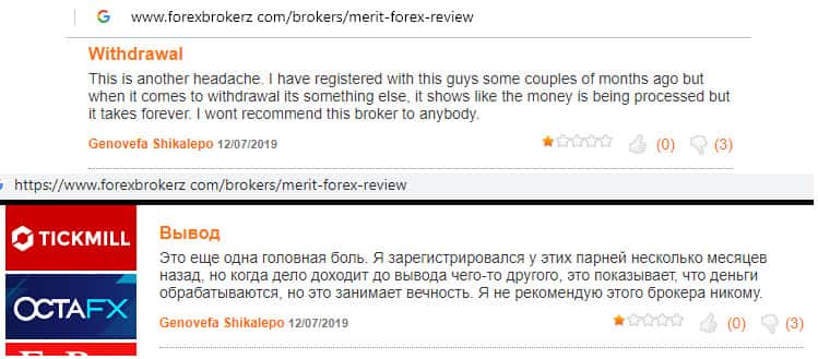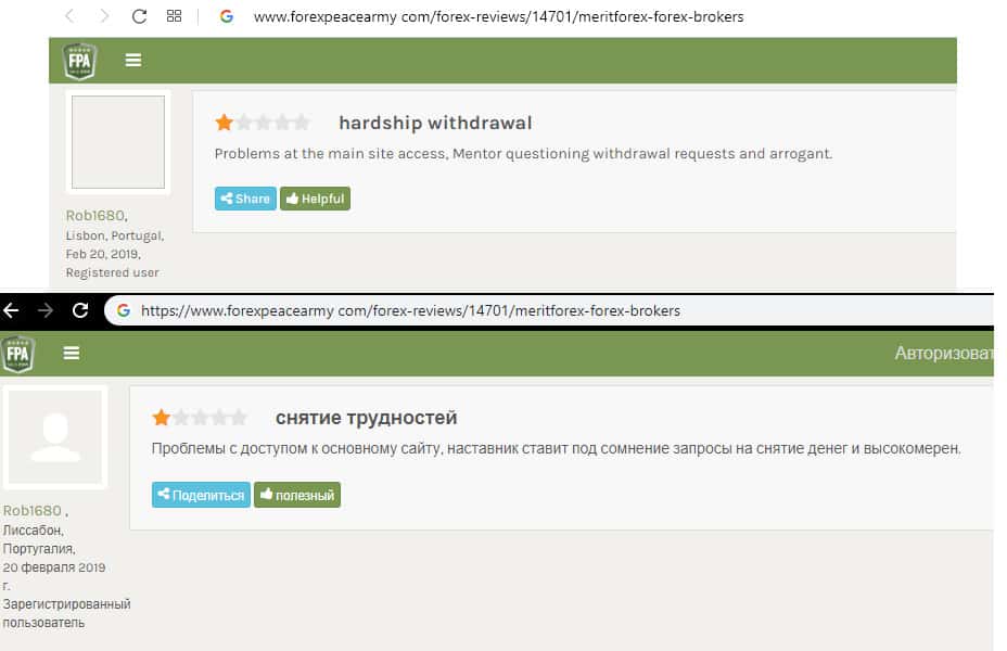 Очередной пользователь высказался не в пользу аферы MeritForex