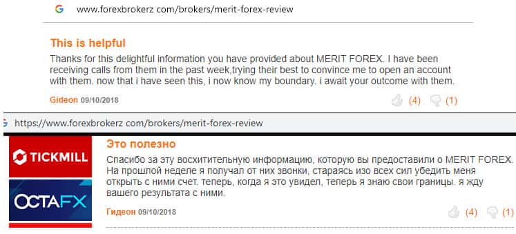 В следующем отзыве потенциальная жертва конторы MeritForex описал свою ситуацию, в которую он чуть ли не попал, если бы не статья на одном из ресурсов. Там он узнал, что шарашкина контора Мерит Форекс кидает людей и тем самым это спасло его от ненужных инвестиций и открытия торговых счетов.